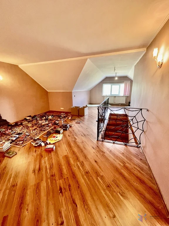 На втором этаже находятся: холл (45 кв. м) и три отдельные комнаты (21,5, 15,8 и 13,5 кв. м). Также есть большой чердак, занимающий весь дом.