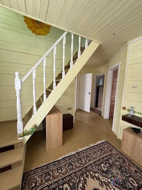 На первом этаже: просторная кухня-гостиная, две комнаты и санузел. На втором этаже: три спальни. В доме выполнен качественный ремонт, продается с мебелью и техникой. Все коммуникации в доме, включая газовое отопление, что позволяет проживать здесь круглый год.